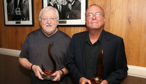 Pat Alger, an adjunct faculty member in songwriting and a Nashville Songwriter Hall of Fame inductee, was recently honored with the Georgia Music Foundation Flamekeeper Award at the Fifth Annual “Georgia on My Mind” concert, hosted by The Peach Pickers at the Ryman. The award was introduced in 2014 and recognizes individuals whose work tirelessly preserves and promotes Georgia’s musical roots and traditions. Alger is pictured above with fellow Flamekeeper Award recipient and Nashville Songwriters Hall of Fame member Tony Arata.