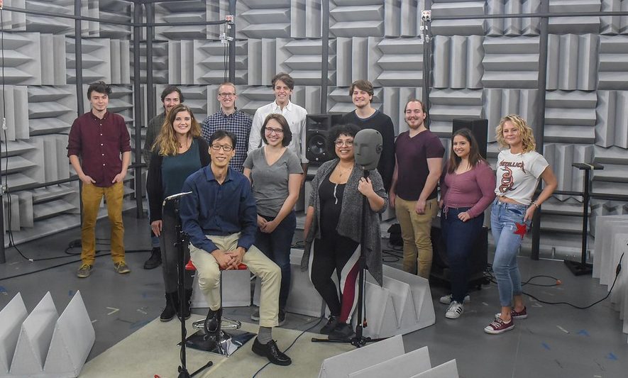 Dr. Doyuen Ko and students work in the anechoic room at Belmont University in Nashville, Tennessee.
